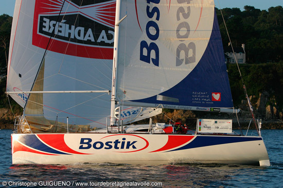 Arrivée de l'étape de nuit Perros-Guirec, Douarnenez, Bostik (nicolas lunven, charles caudrelier)